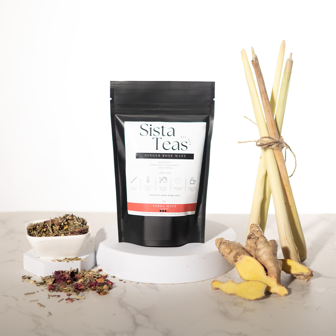 Yerba Mate tea infused with ginger, rose and lemongrass