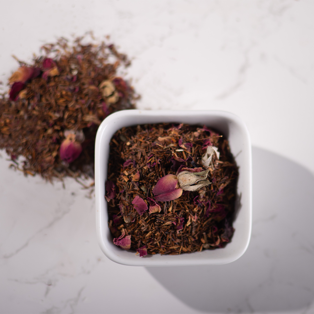Caffeine-free rooibos tea with subtle hints of vanilla and rose