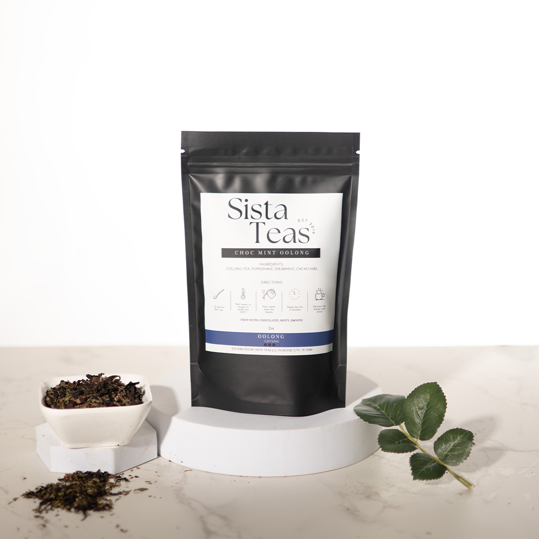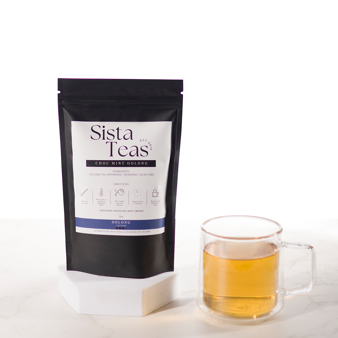 Oolong blended with cocoa nibs and mint