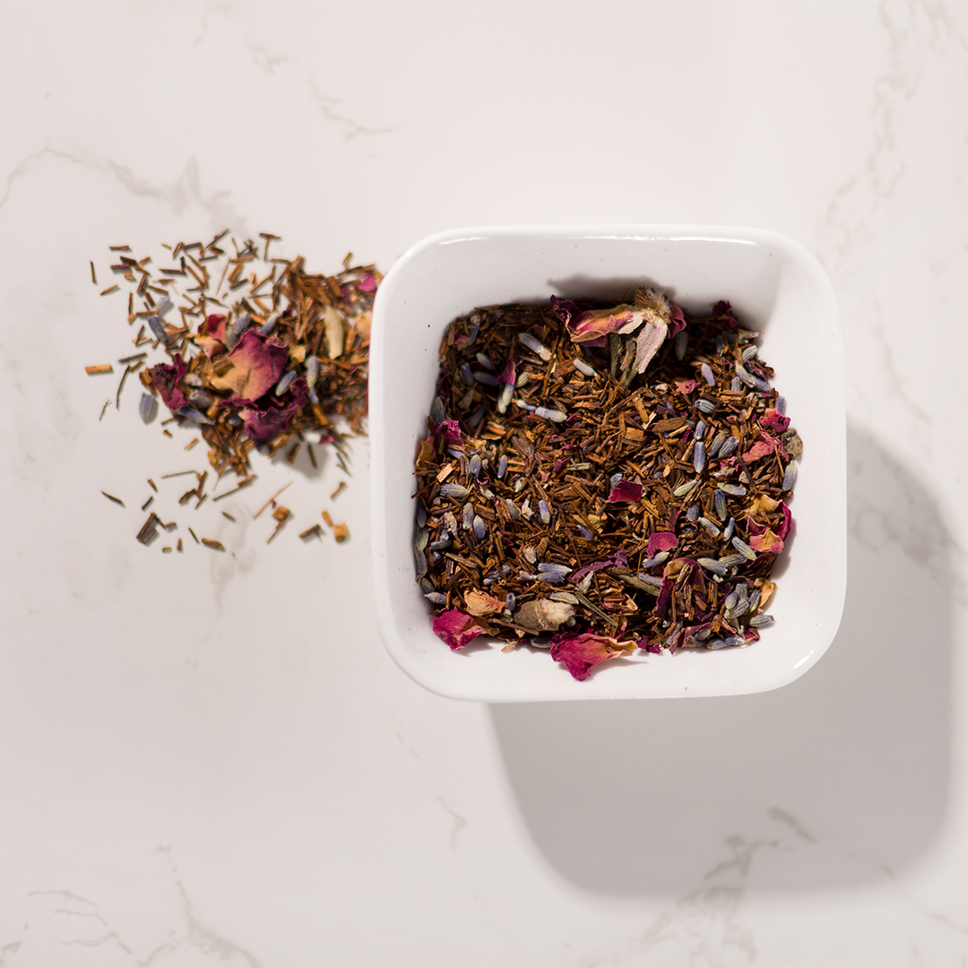 Caffeine-free rooibos tea with subtle hints of vanilla, lavender, and rose